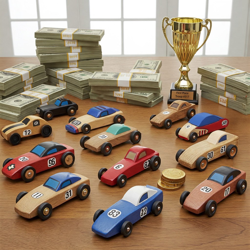 Evansville, IN – In a shocking development that has rocked a quiet suburban community, authorities have uncovered an elaborate illegal gambling operation centered around children’s Pine Wood Derby races, a traditional Boy Scout competition where homemade wooden cars race down a track.